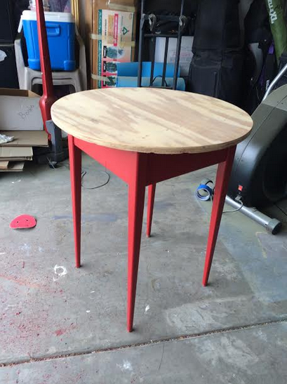 The first thing I did was strip the paint off the top. I decided to just sand it off, rather than use stripper. The latex paint was real rubbery and clogged up the sandpaper pretty quick. It was still easier than stripping it. I opted to just paint over the rest of the table.